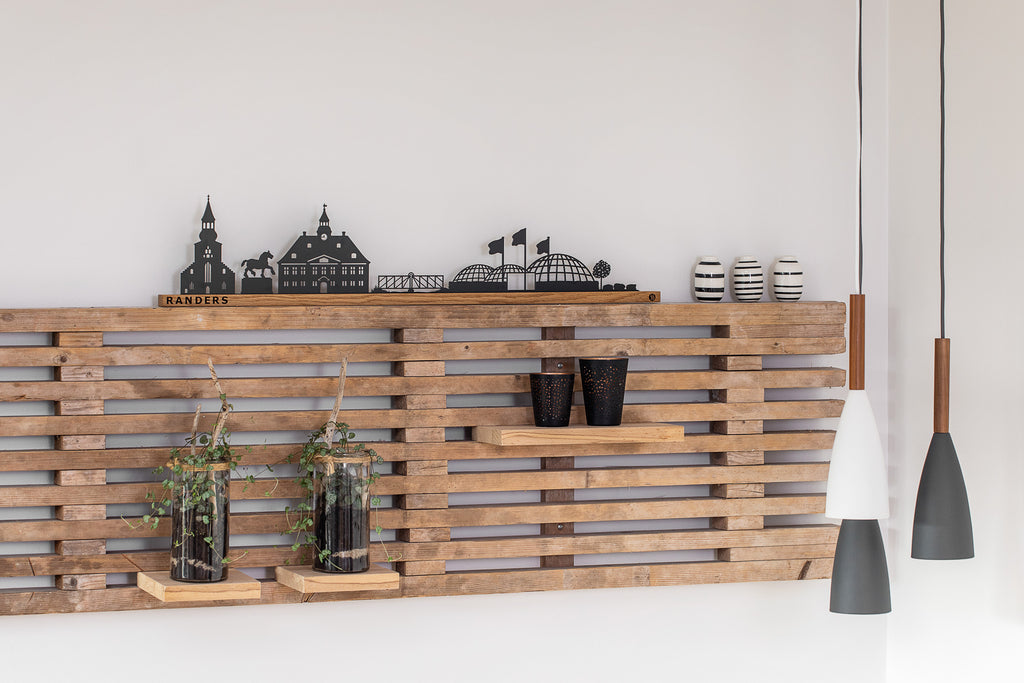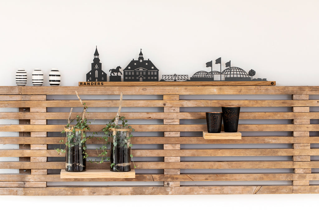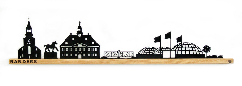 Med det integrerede vægophæng i egetræslisten har du både mulighed for at sætte Randers på en hylde på kontoret eller hænge byen på en væg i stuen. Ved ophæng gemmes skruerne i egetræslisten og der opnås en fin svævende effekt. Detaljerne i hvert enkelt varemærke fra Randers har et fint sammenspil mellem lys og skygger, og den sorte silhuet giver en fin og skarp kontrast til den lyse egetræsliste. Samlet får du et kvalitets design, som kan give et personligt præg til indretningen i hjemmet og skabe glæde i mange år.